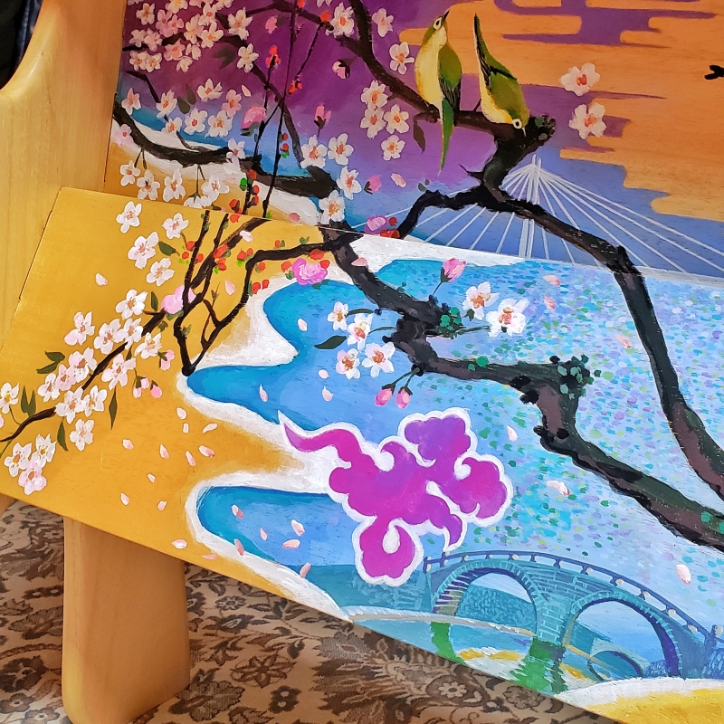 nishimokkoさんに作ってもらった私専用の立ち立奏台にイラストレーターである主人の絵があったらどんなに素晴らしい物になるか、想像しただけでもワクワクしました。それほど今回の立奏台には強い思い入れがありました。