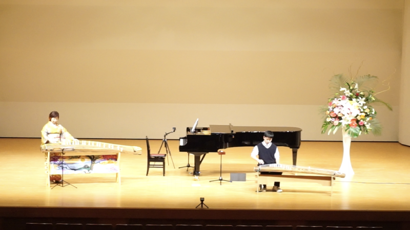 初めてお琴を聴く子供たちにも楽しく聴いてもらえるようにと鬼滅の刃より「竈門炭治郎のうた」を13絃と17絃の合奏で演奏しました。